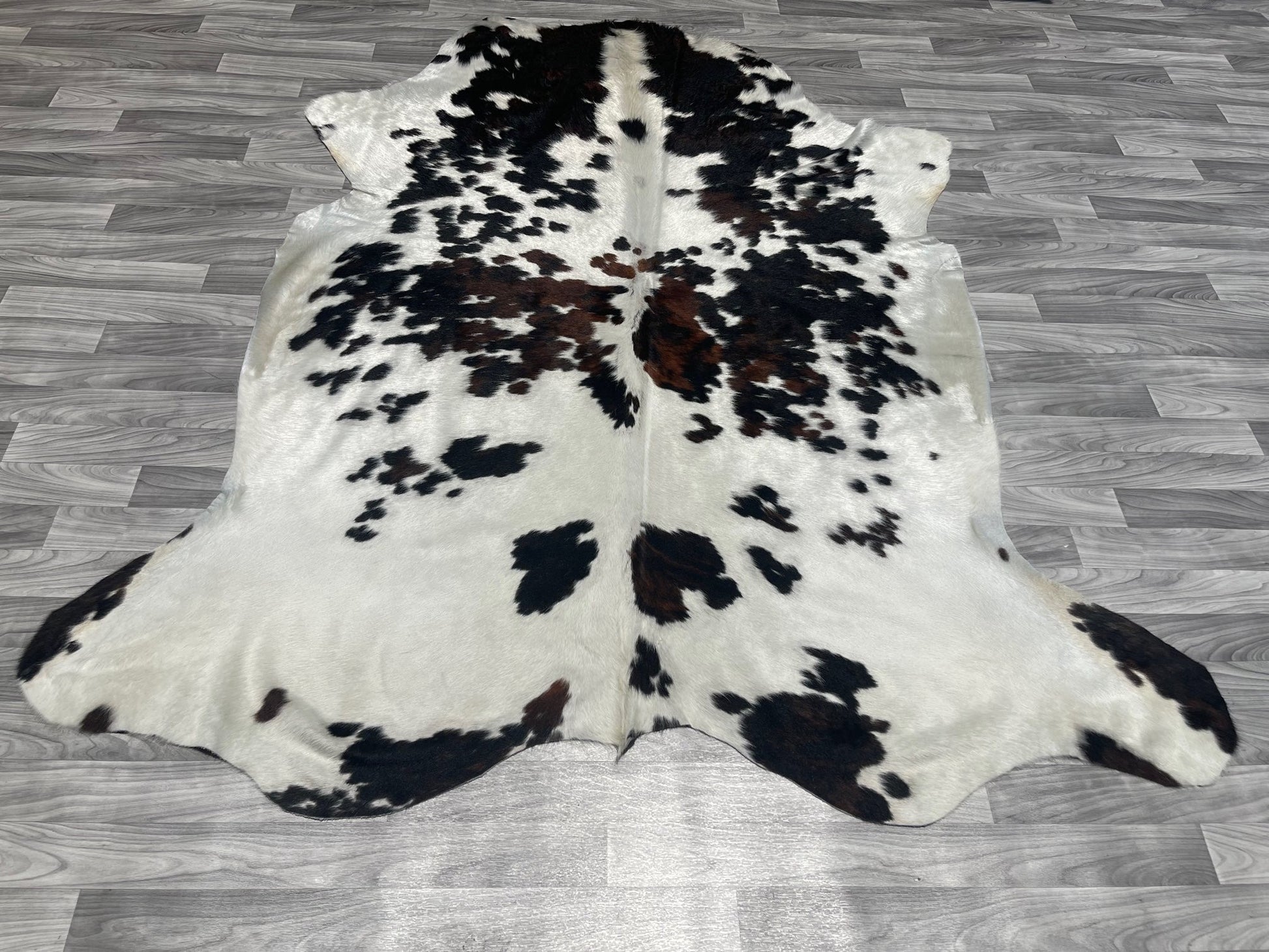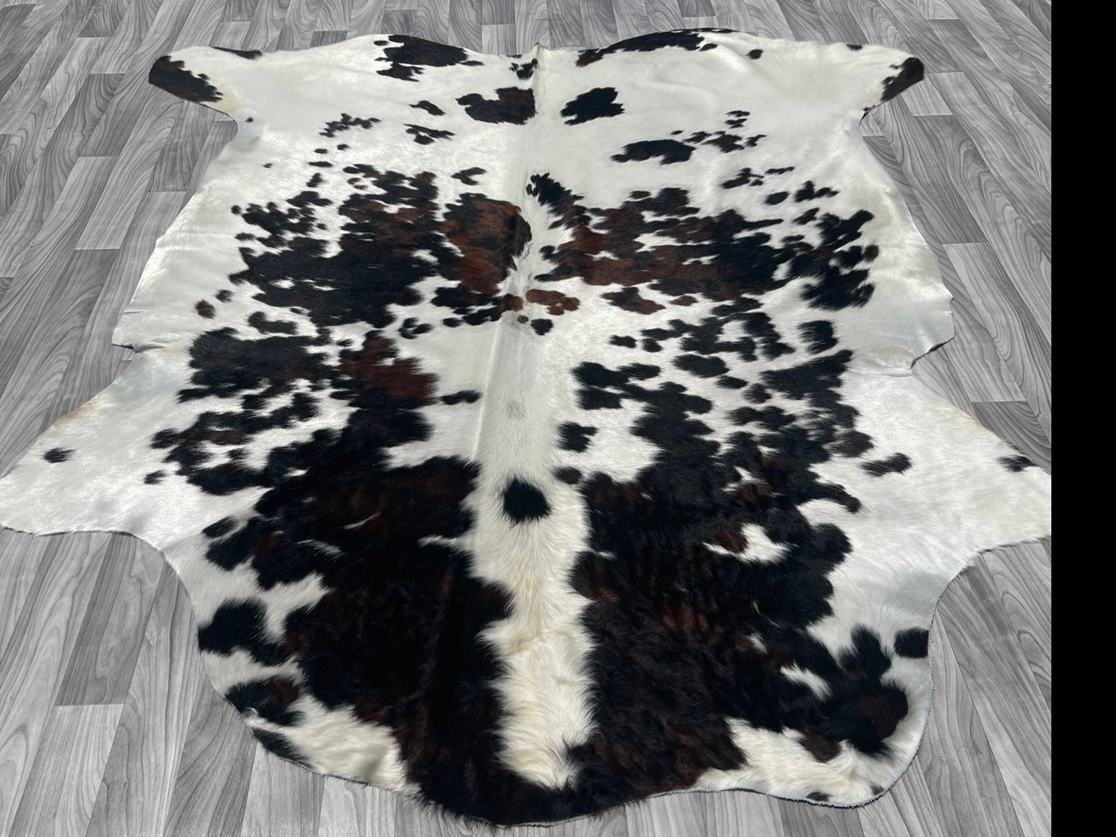 If you want to create a focal point in your interior décor, this tricolor dark cowhide rug will do the trick just right. The authentic Brazilian cowhide with grade-A quality is the best part of this rug. Reach out to our team if you need help with measurements and size.