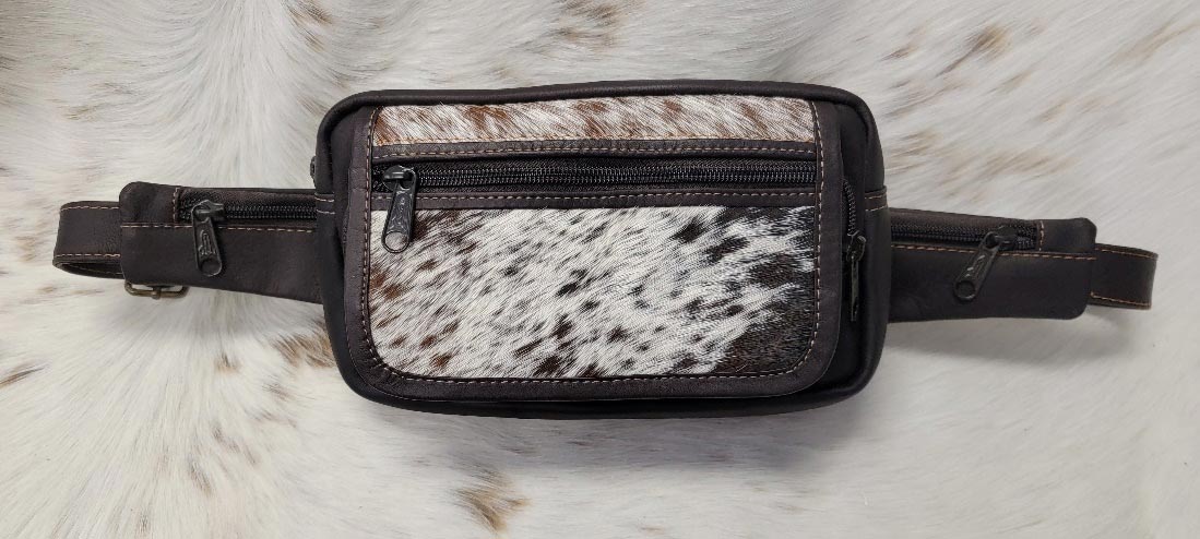 Our Chocolate Leather Pony Style Fanny Pack is a perfect statement piece for people on the go. Immerse yourself in the world of durability and sophistication with this 100% original Brazilian leather masterpiece. Showcase your fashion sense with the charming blend of black, brown, and white cowhide accents that make this fanny pack a must-have.